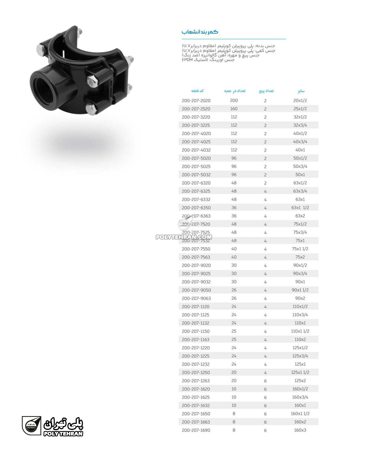 - کمربند 20 به 160: کمربند انشعاب پلی اتیلن 1/2×160 میلیمتر (معادل 1/2×6 اینچ) – کمربند 1/2*160