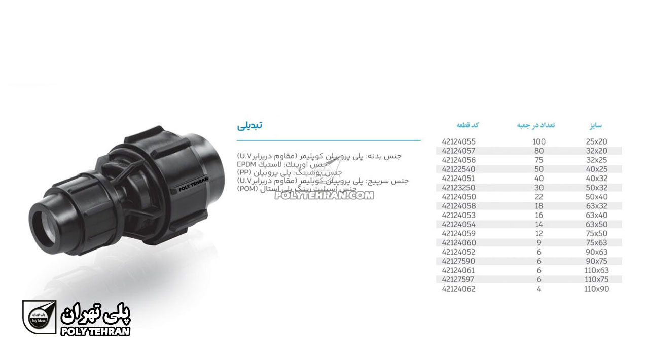 - تبدیل 40 به 63: تبدیل پلی اتیلن پیچی 40×63 میلیمتر (معادل 1/4 1×2 اینچ) – تبدیل 40*63