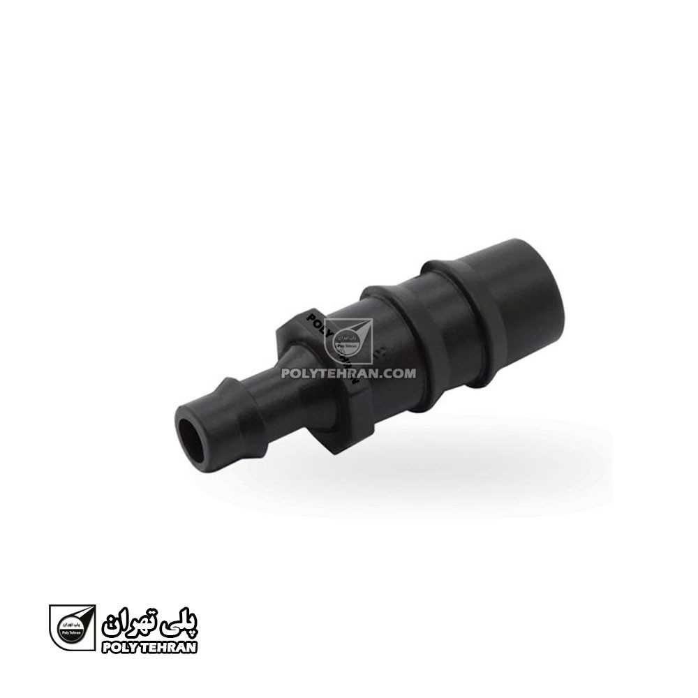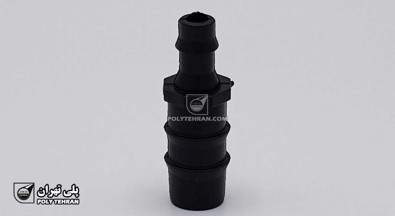 - دنباله خاری (Barbed End): قسمتی که لوله 16 میلیمتری فرعی روی آن سوار میشود و به دلیل وجود خارها، لوله را به صورت محکم در جای خود نگه میدارد و از جدا شدن آن زیر فشار جلوگیری میکند.